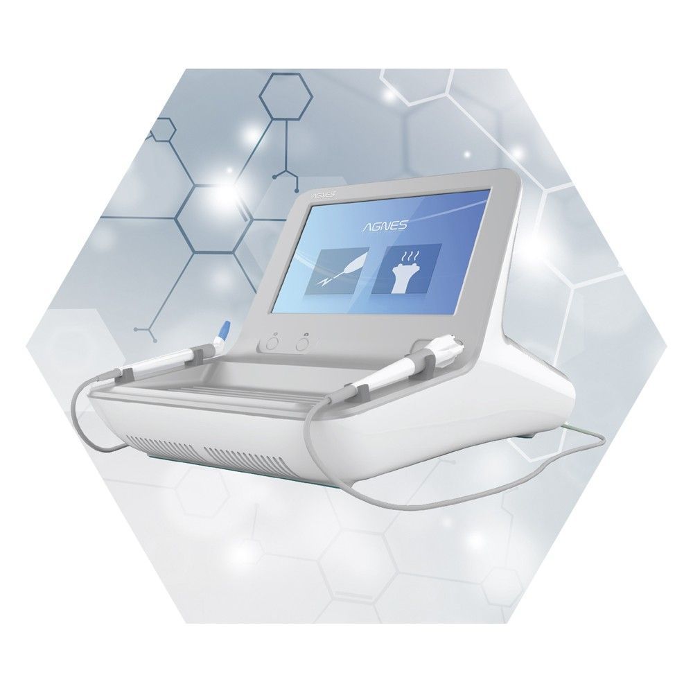 Agnes RF is an acutely placed radio frequency tool that, based on the depth of insertion, can produce skin tightening or melting of facial fat. It can be used on many of the areas of the face, including under the eyes and the jawline, as well as to treat persistent acne cysts and overactive oil glands.